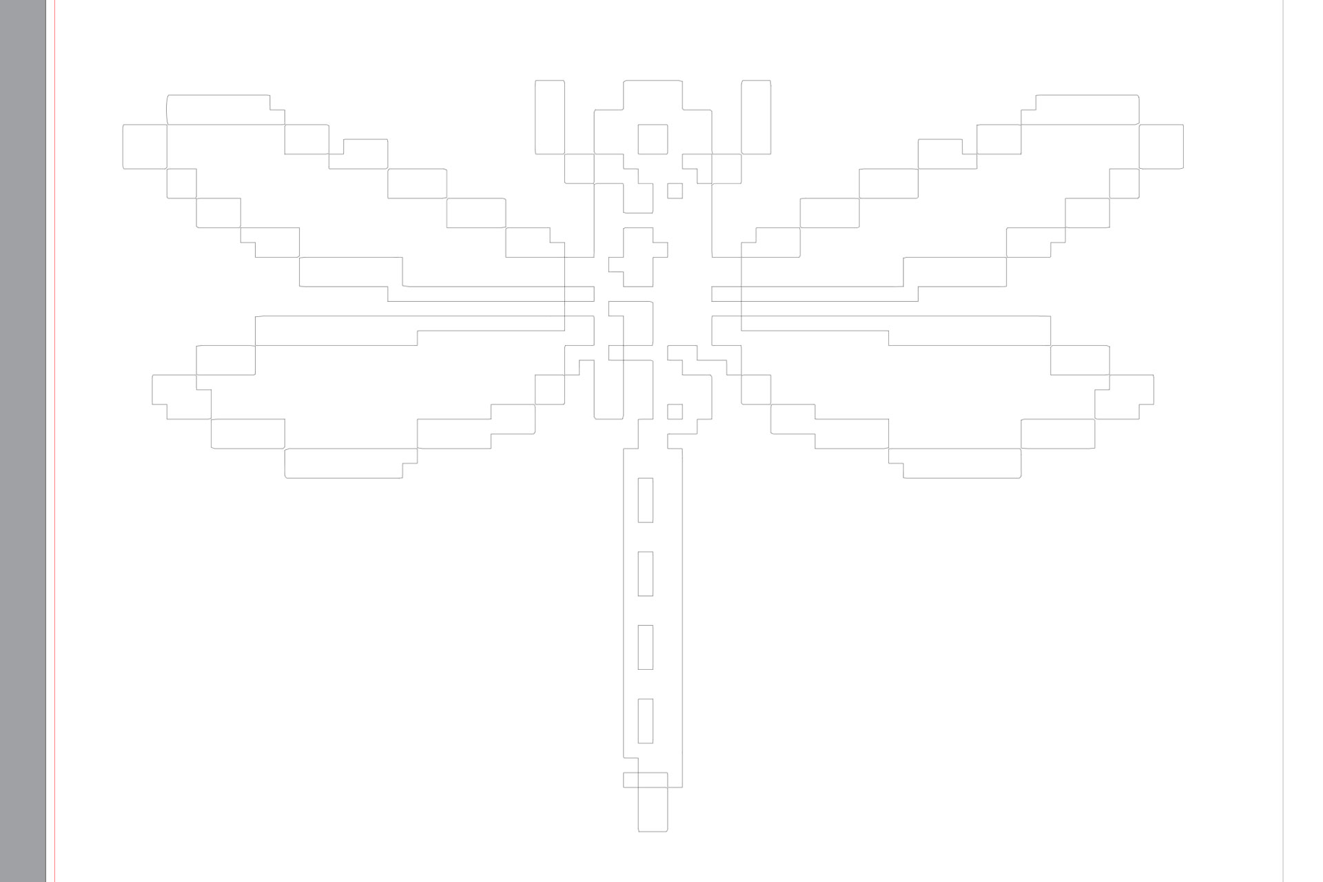 Silhouette Studioに移って、DXFを取り込んだところ(メニューの ファイル - 挿入 より)。無事、データの歪みが解消されている。